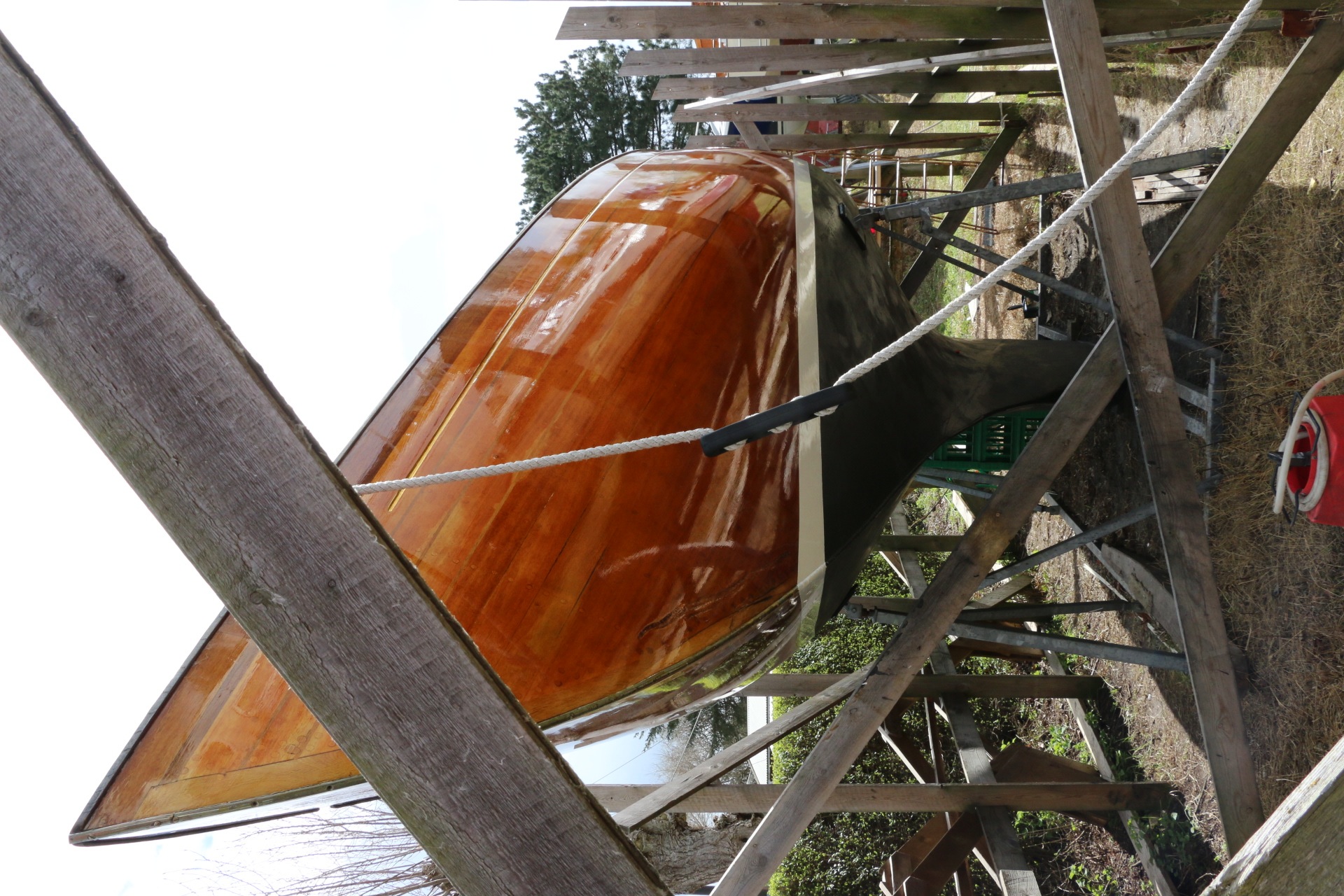 Jeg fulgte forskrifterne nøje, og gave to gange preimer og der efter 10 lag med mellemslibning inden det sidste. Skandæk og midtfisk er i mahogany, som skal have en særlig rød primer. Den røde primer er vanskelig at arbejde med, og giver et meget "rødt" resultat. Men alt i alt var det store arbejde tilfredsstillende, resultatet var flot og har holdt rigtig godt.