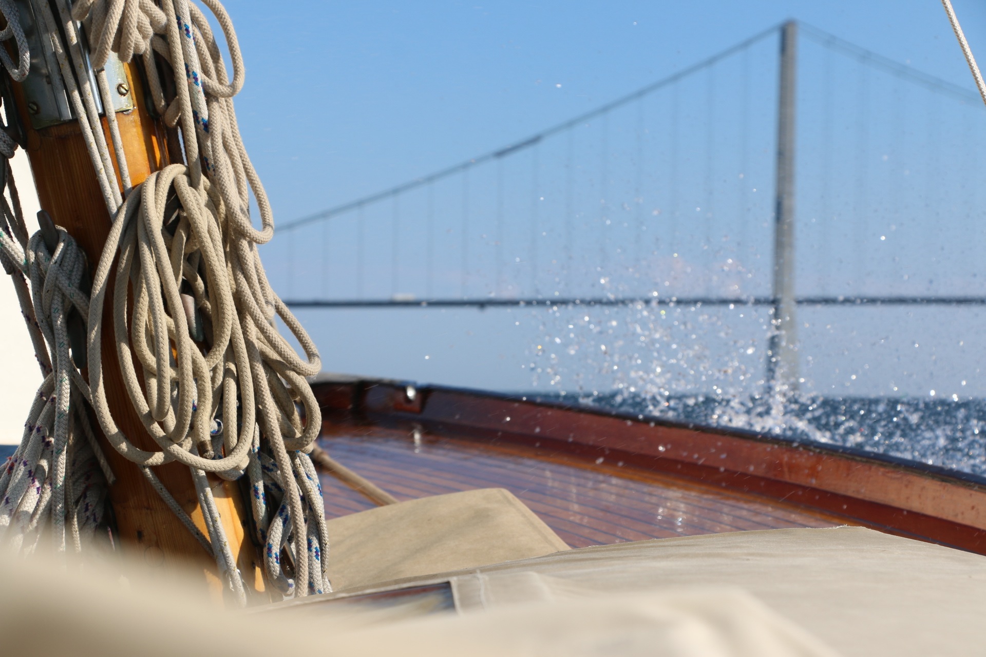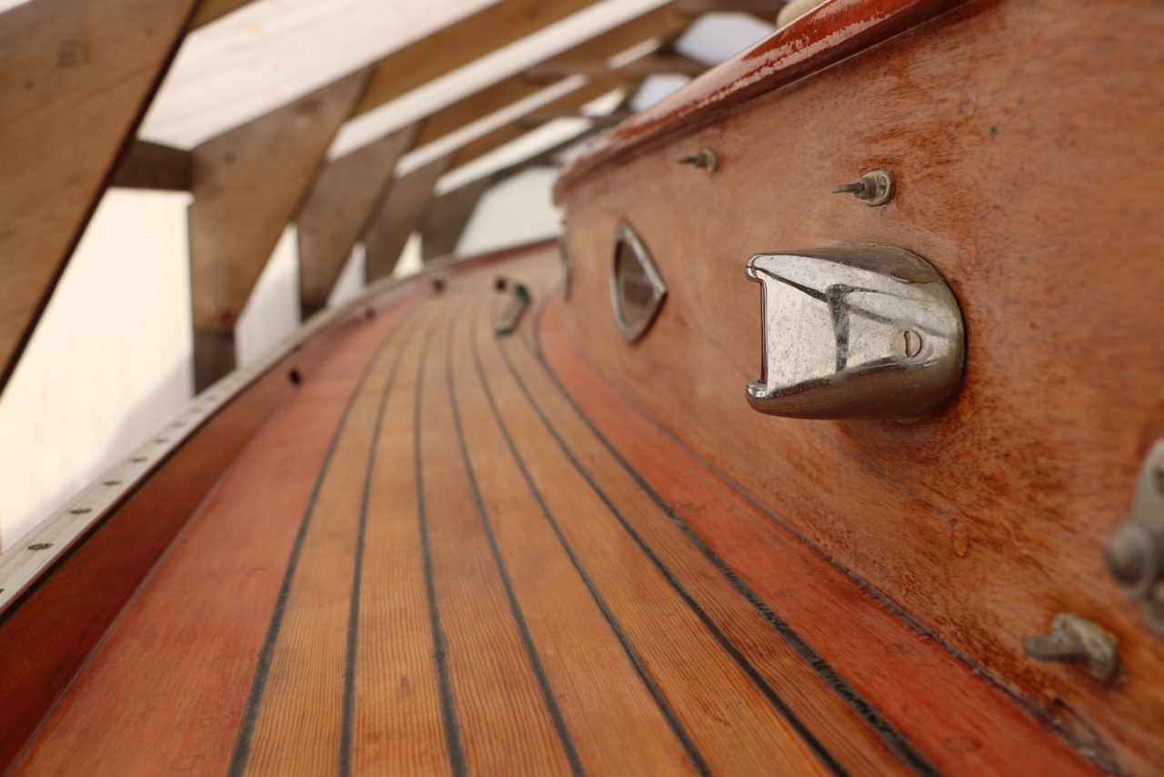 Det nylakkerede dæk spejler fokken. Det bliver ikke ved, med tiden bliver den heldigvis mindre glat.
